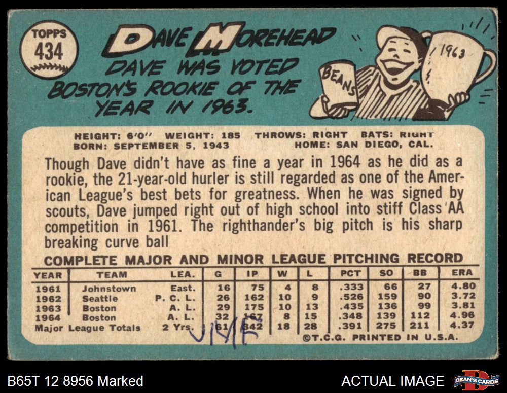 1965 Topps #434 Dave Morehead 1.5 - FAIR