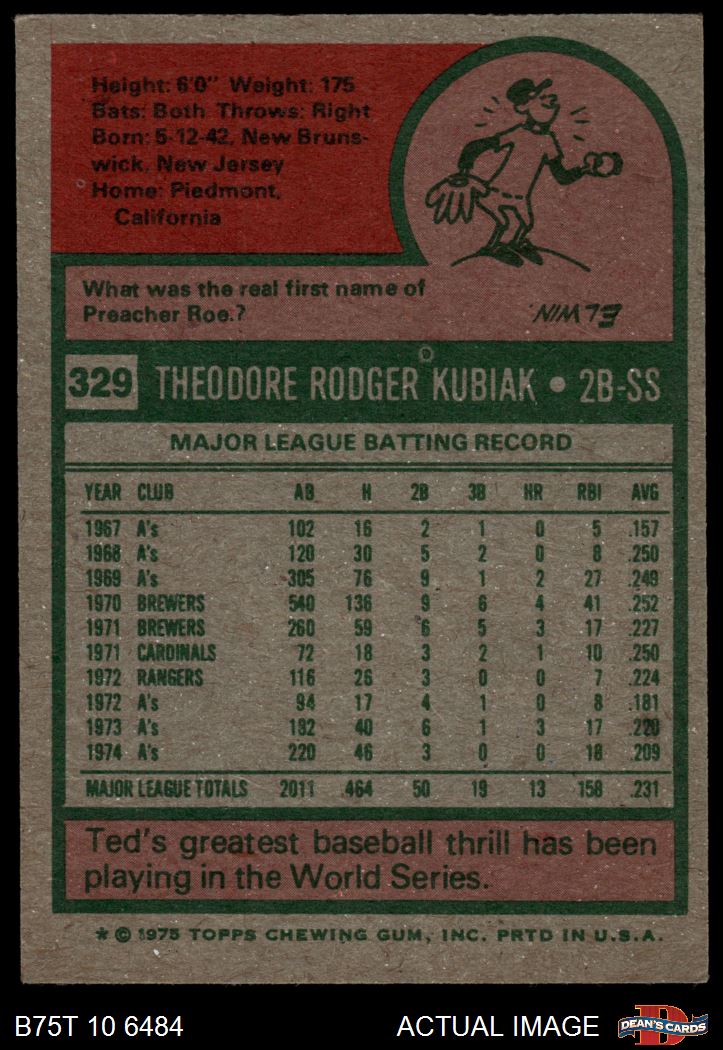 1975 Topps #329 Ted Kubiak 3.5 - VG+