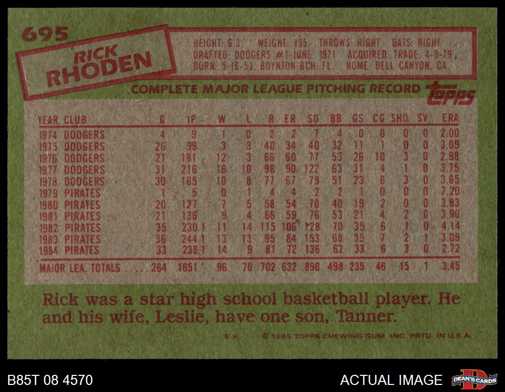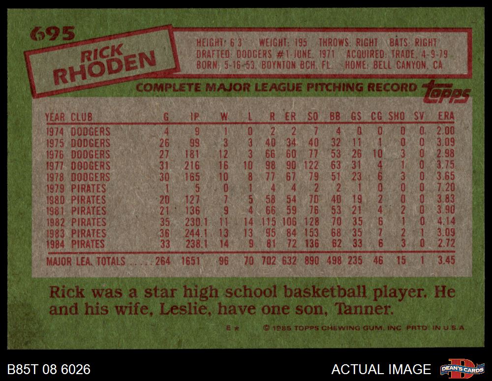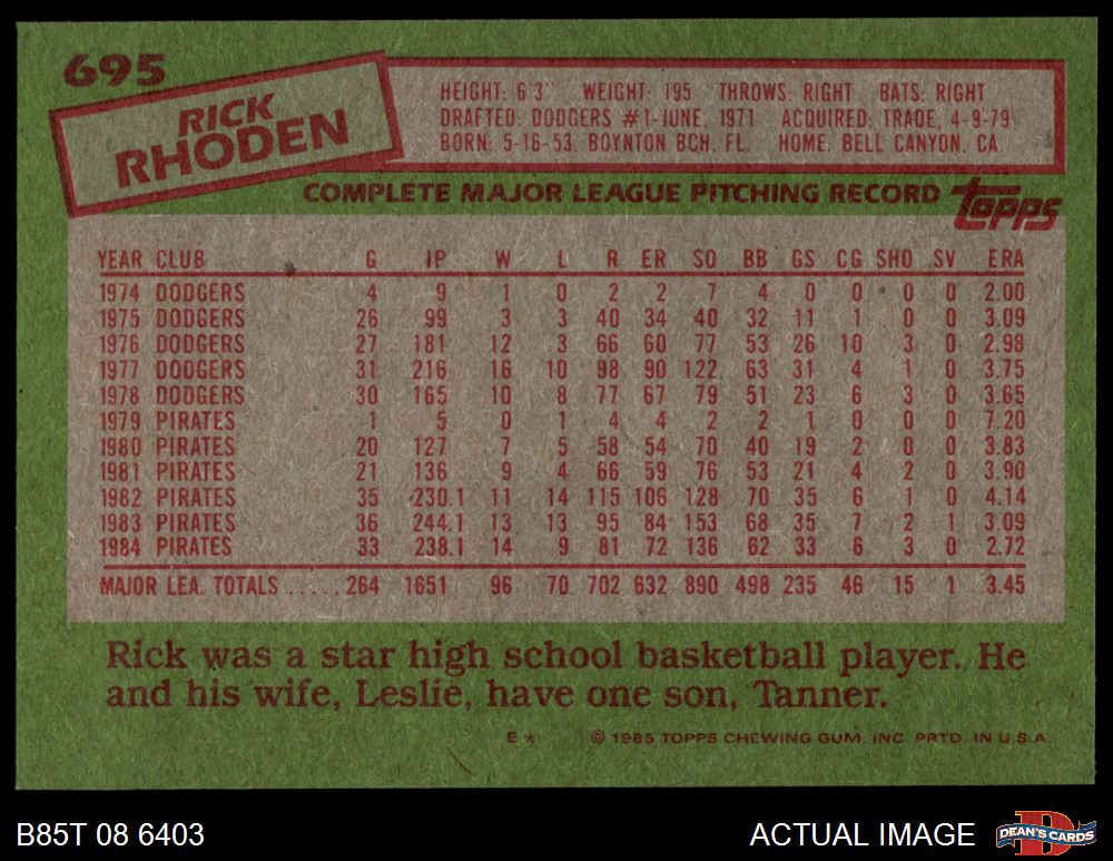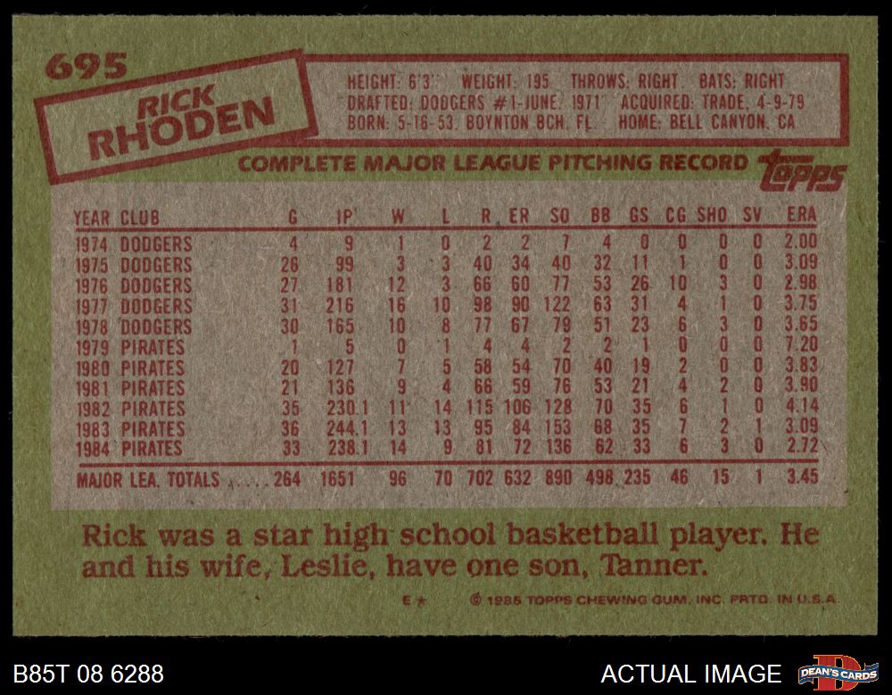 1985 Topps #695 Rick Rhoden