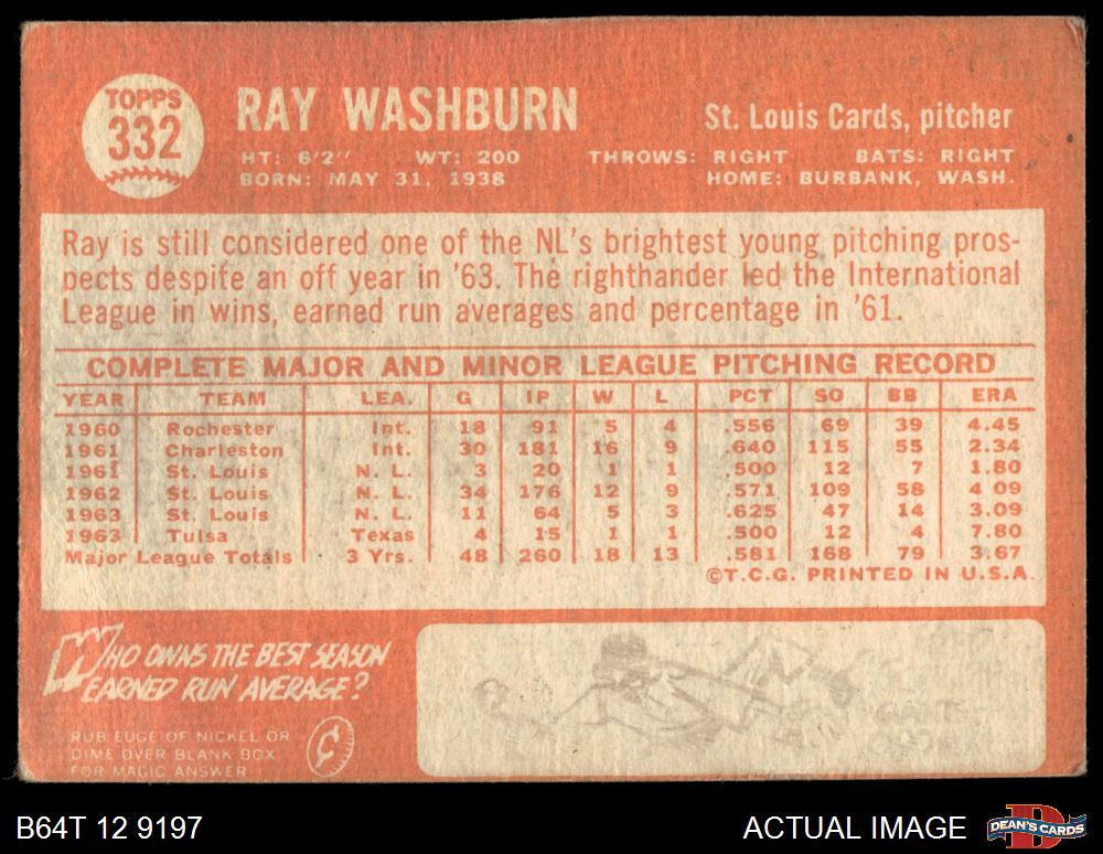 1964 Topps #332 Ray Washburn 2 - GOOD