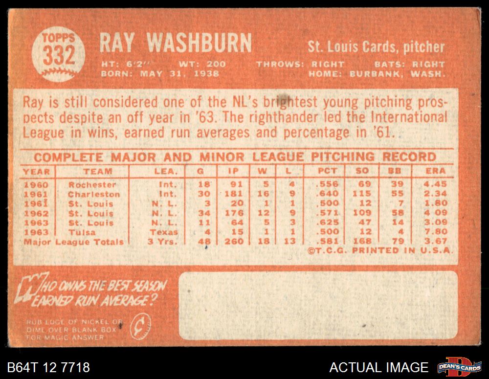 1964 Topps #332 Ray Washburn Front Thumbnail