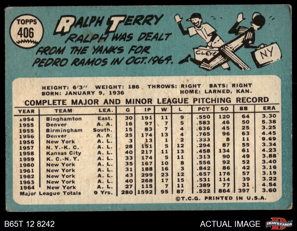 1965 Topps #406 Ralph Terry Front Thumbnail