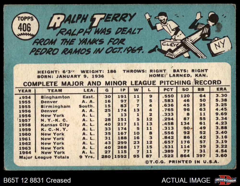 1965 Topps #406 Ralph Terry 1.5 - FAIR