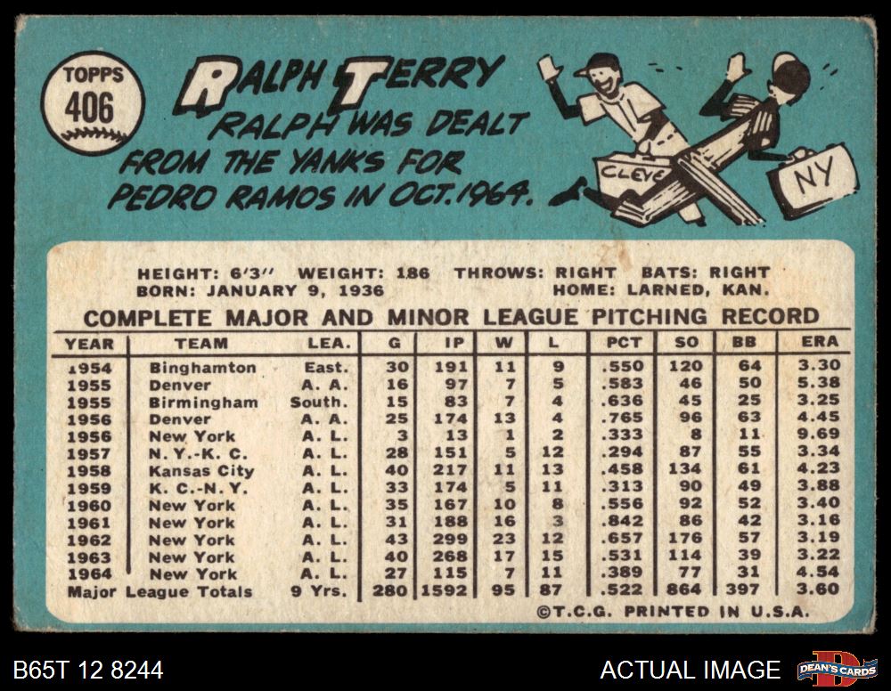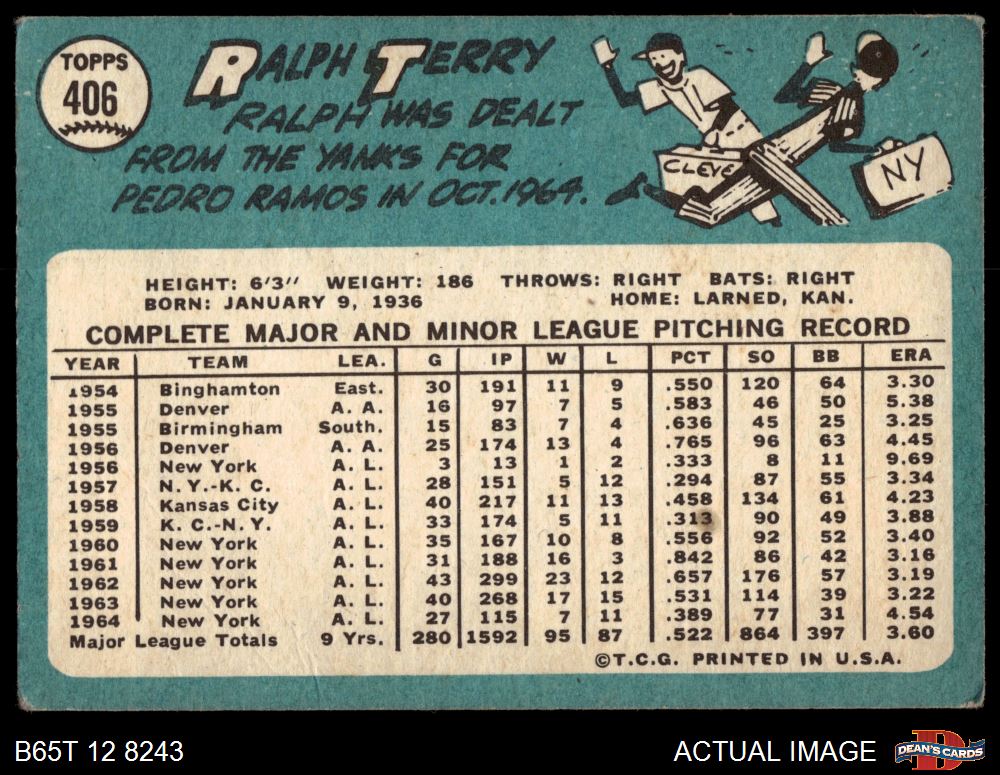 1965 Topps #406 Ralph Terry 2 - GOOD