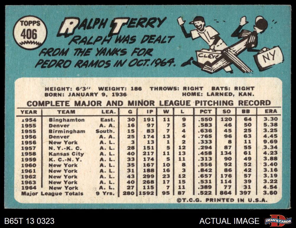 1965 Topps #406 Ralph Terry 3.5 - VG+