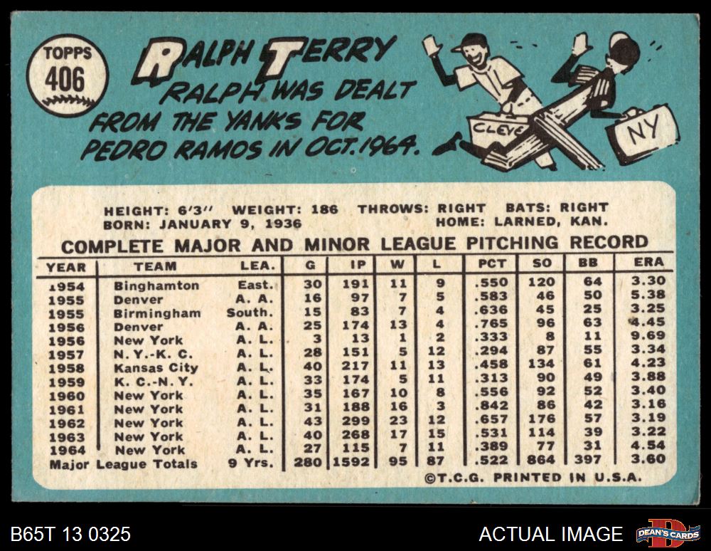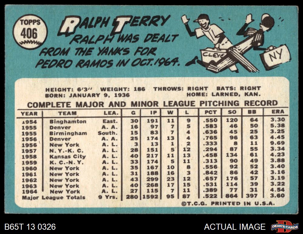 1965 Topps #406 Ralph Terry 4 - VG/EX