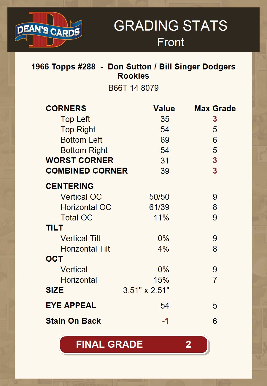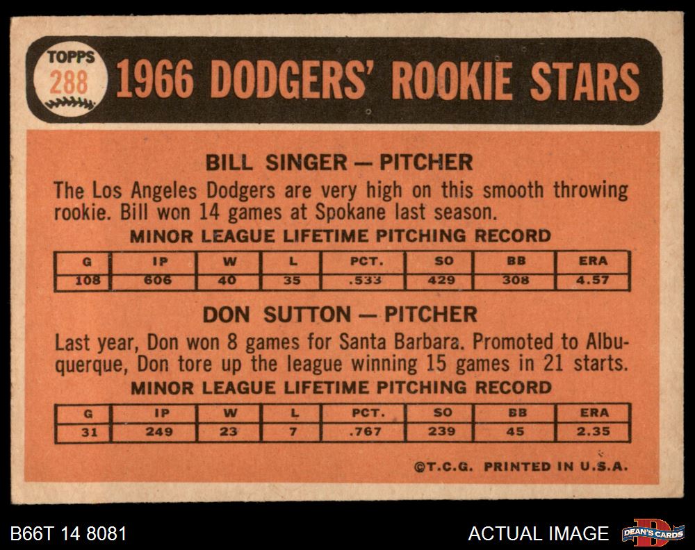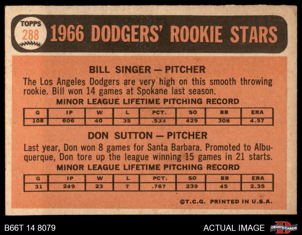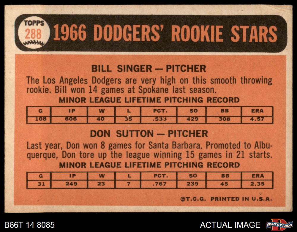 1966 Topps #288 - Don Sutton / Bill Singer Dodgers Rookies 2 - GOOD