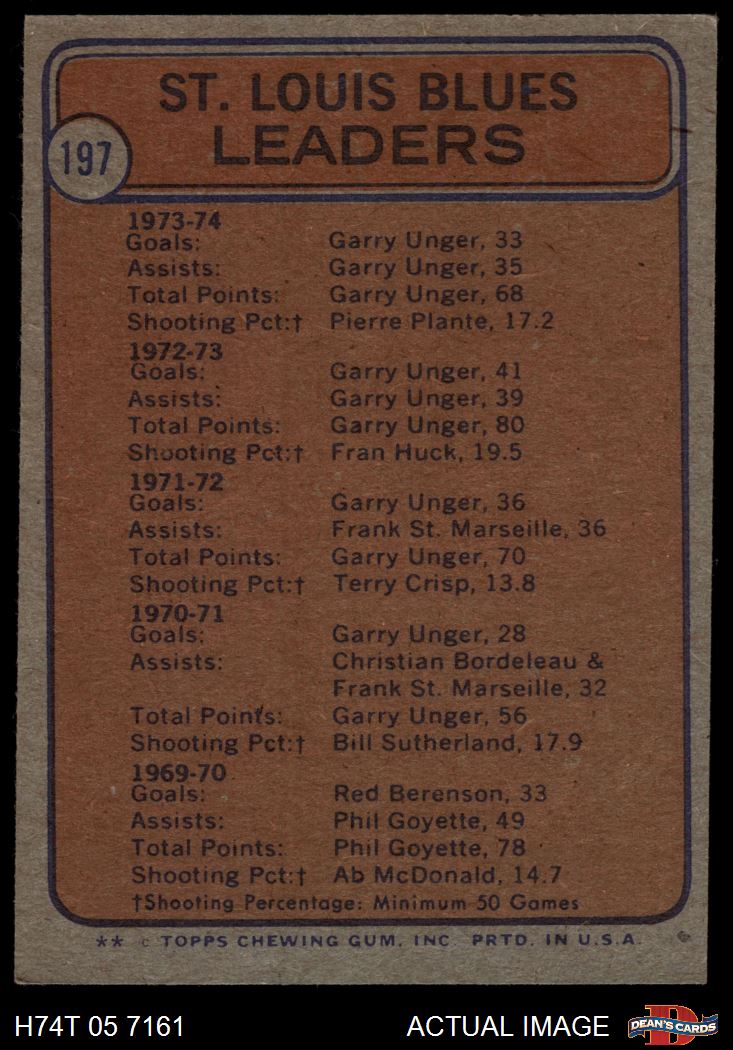 1974 Topps #197 Blues Leaders