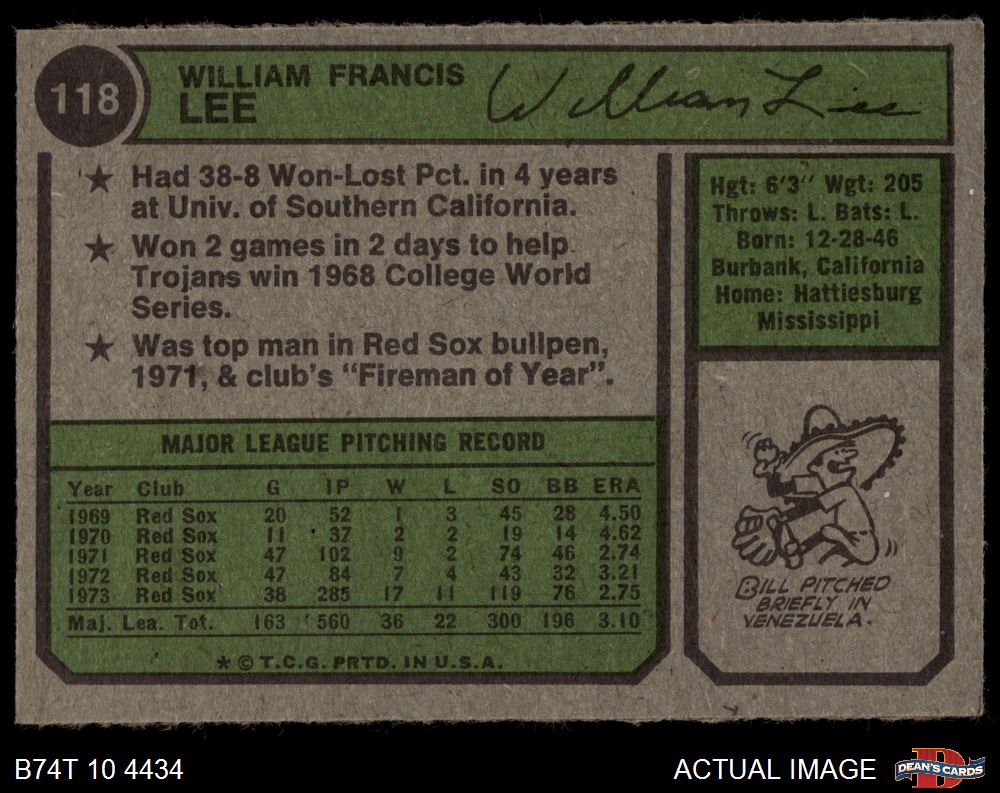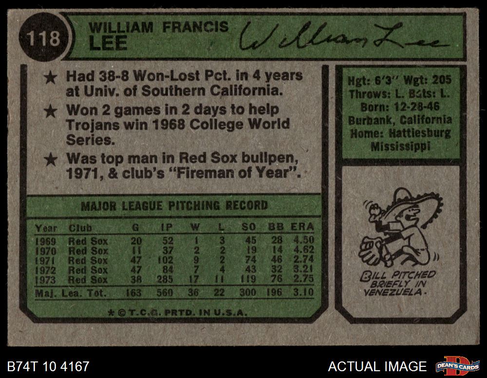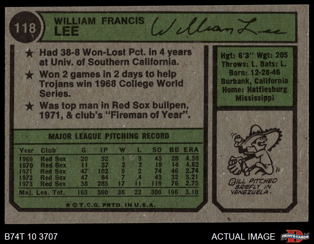 1974 Topps #118 Bill Lee