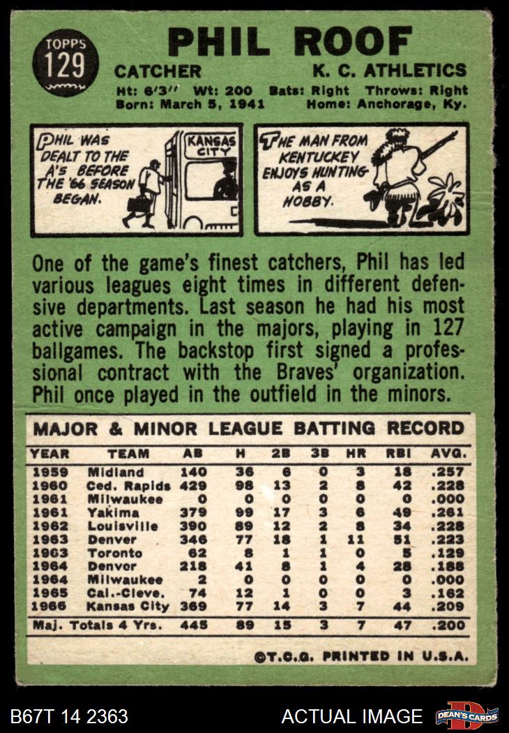 1967 Topps #129 Phil Roof 1.5 - FAIR