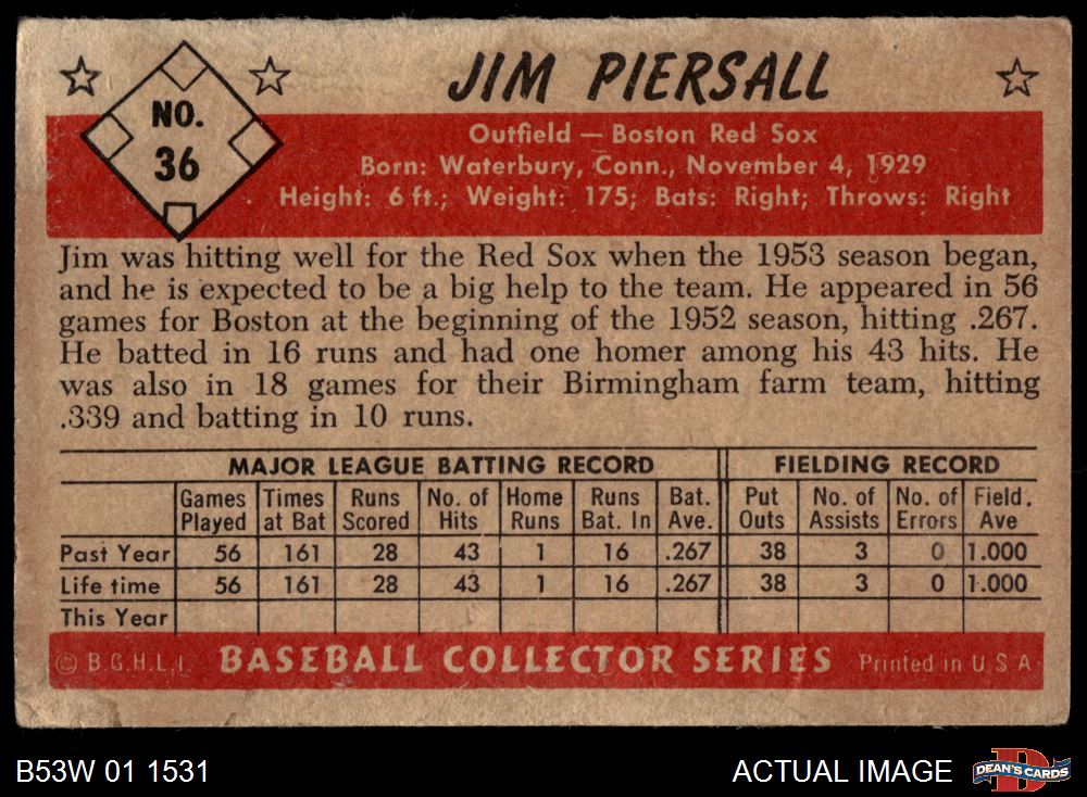 1953 Bowman B&W #36 Jimmy Piersall 2 - GOOD