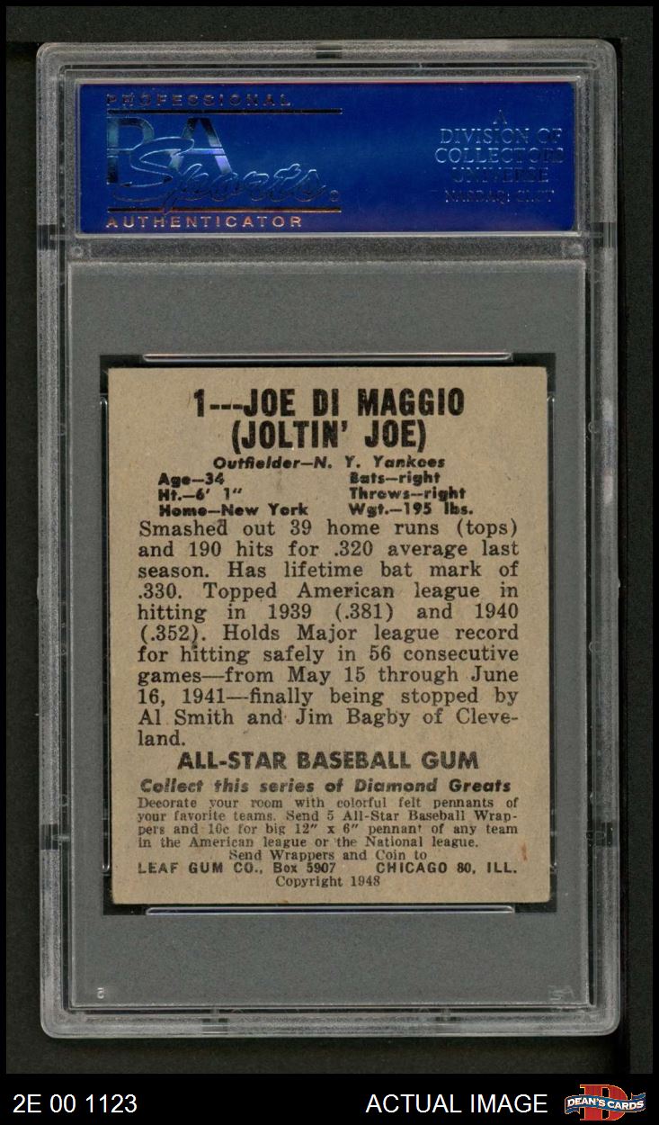 1948 Leaf #1 Joe DiMaggio PSA 4 - VG/EX
