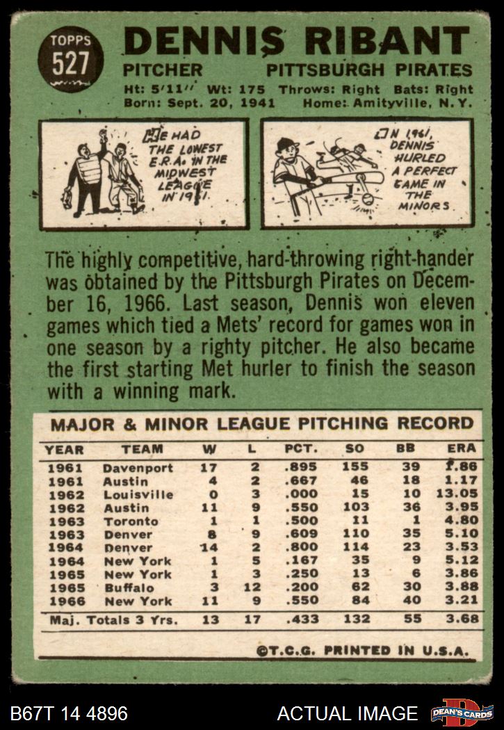1967 Topps #527 Dennis Ribant 1.5 - FAIR