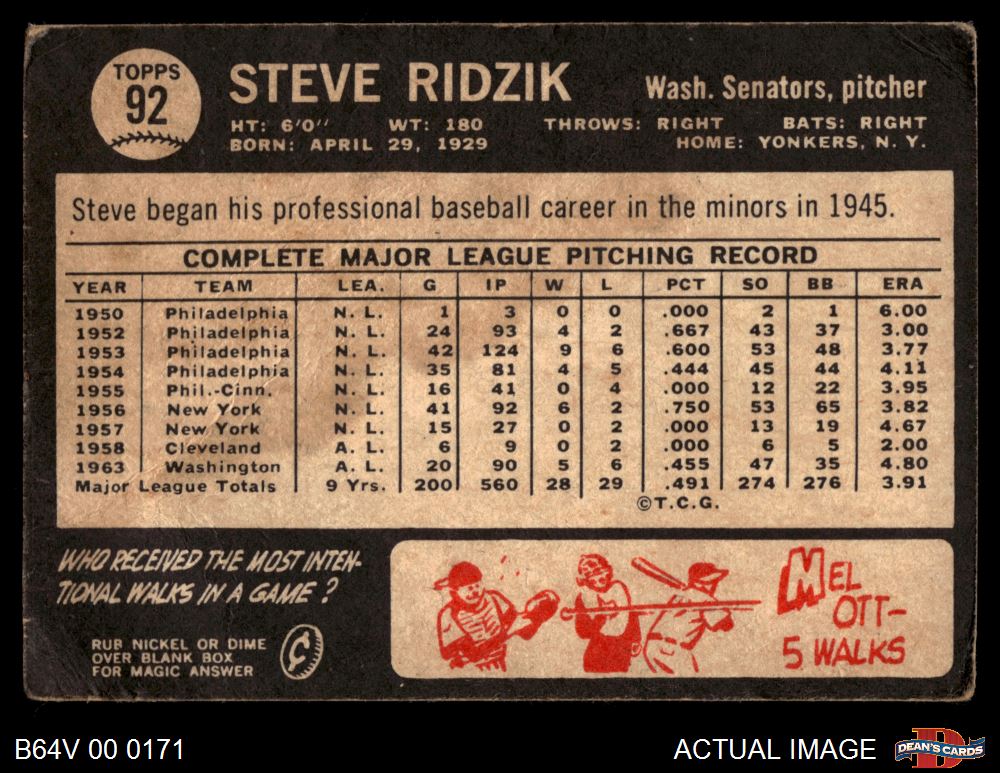 1964 Topps Venezuelan #92 Steve Ridzik 1.5 - FAIR