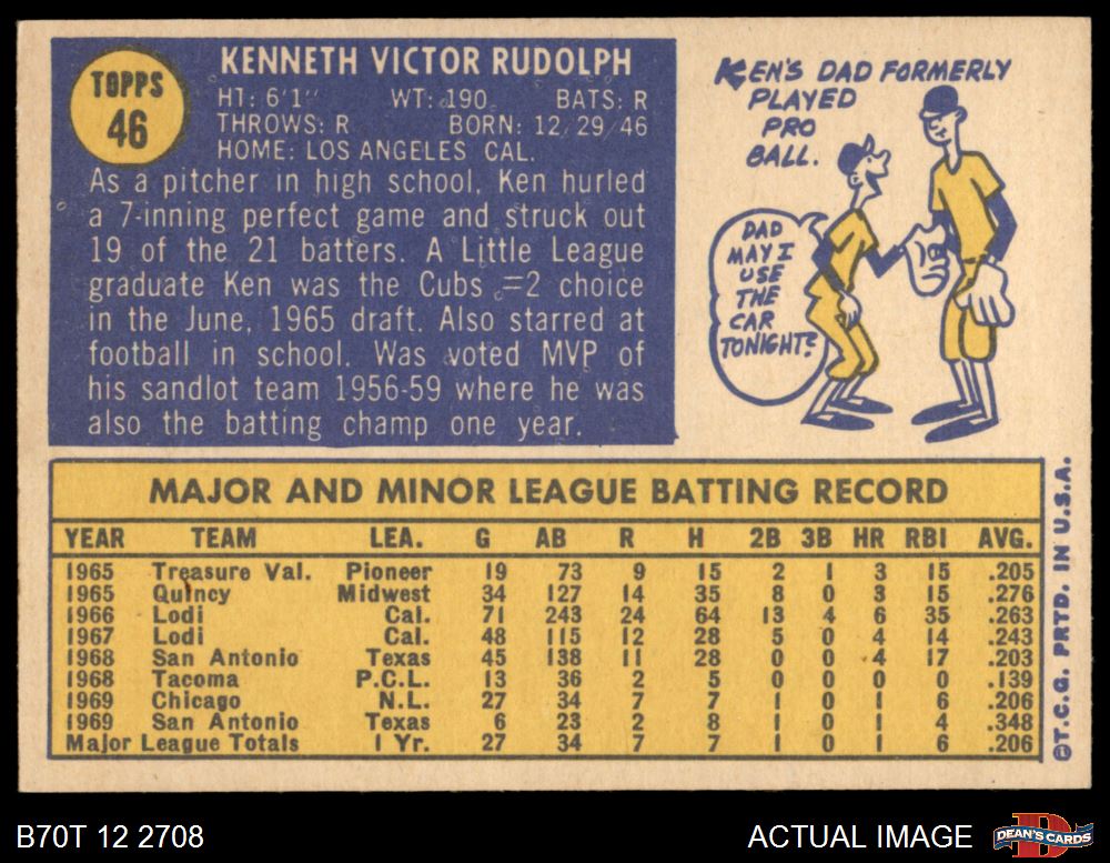 1970 Topps #46 Ken Rudolph