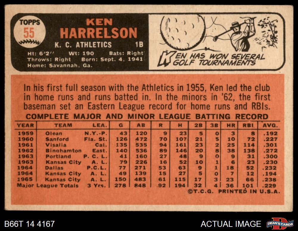 1966 Topps #55 Ken Harrelson 3.5 - VG+