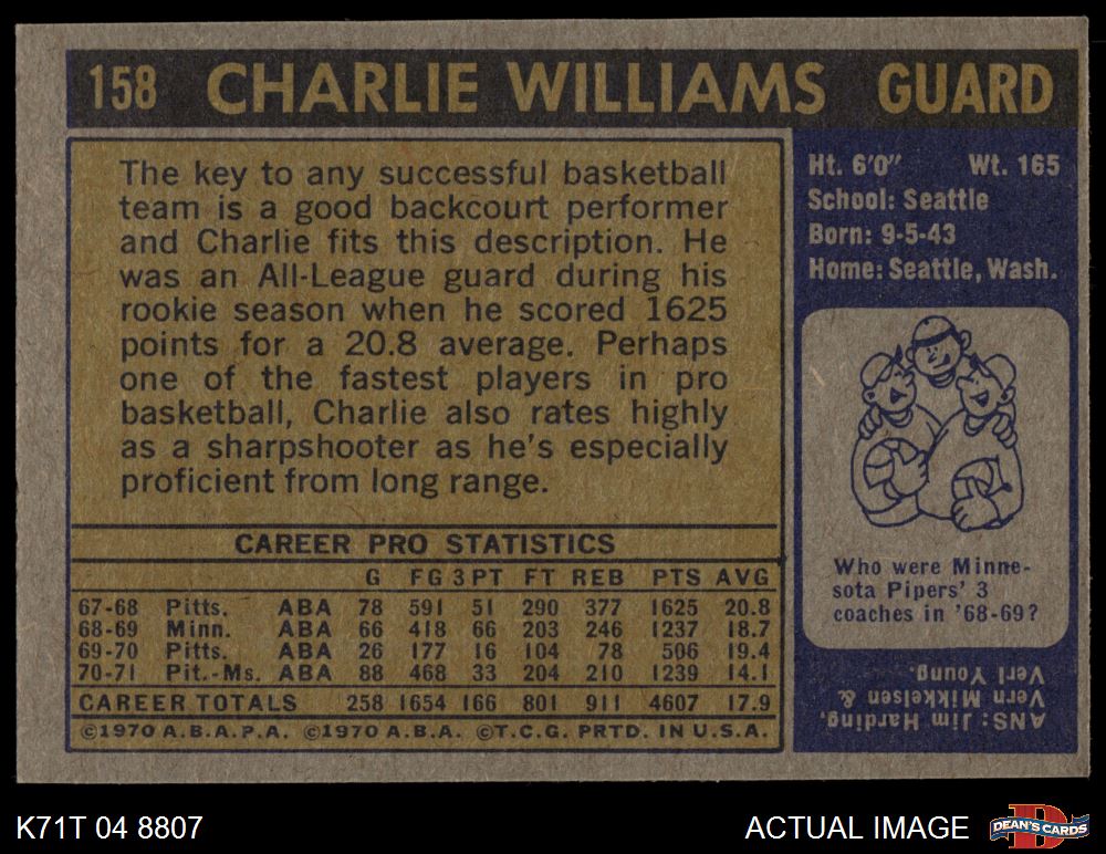 1971 Topps #158 Charlie Williams 4 - VG/EX