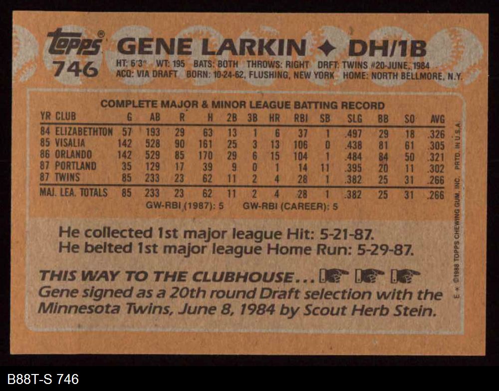 1988 Topps #746 Gene Larkin