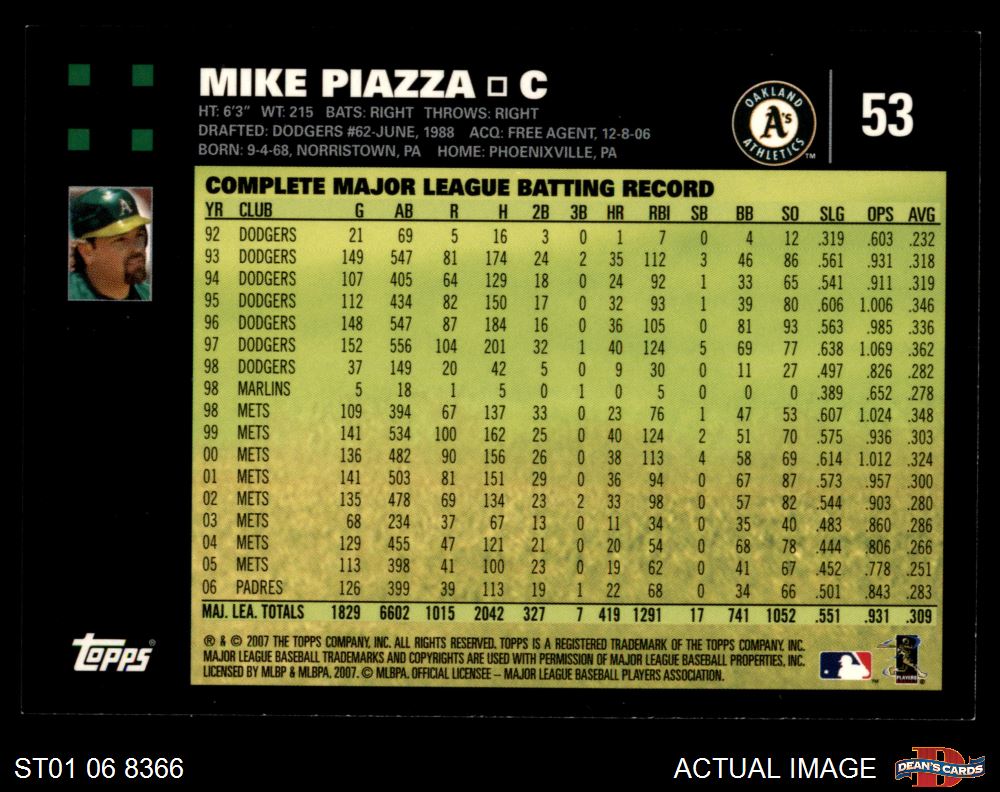 2007 Topps #53 Mike Piazza 8 - NM/MT