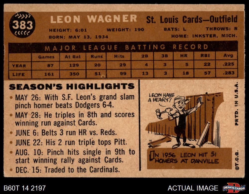 1960 Topps #383 Leon Wagner 5.5 - EX+