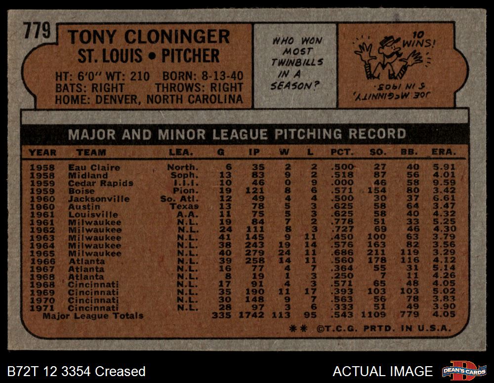 1972 Topps #779 Tony Cloninger Front Thumbnail
