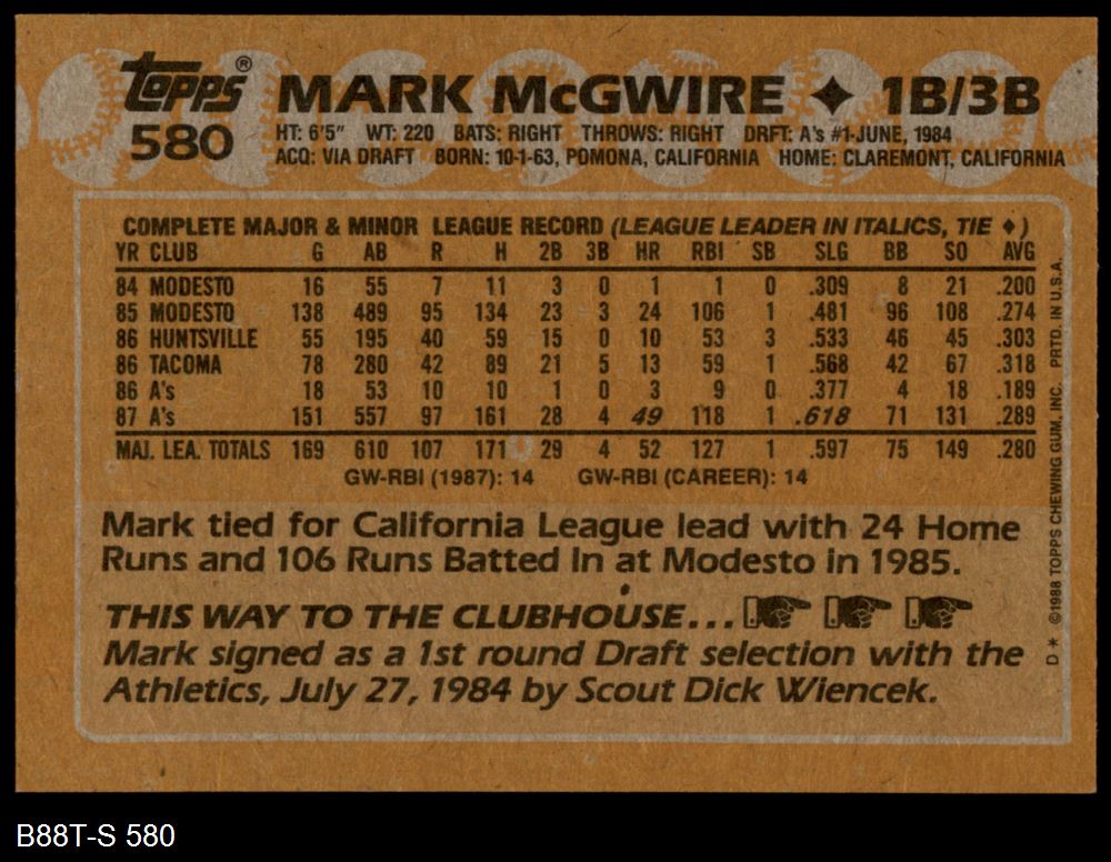 1988 Topps #580 Mark McGwire 8 - NM/MT