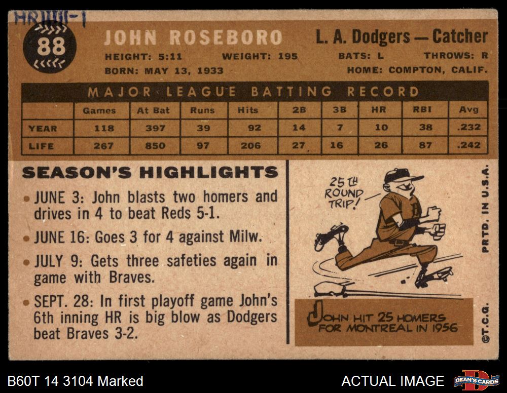 1960 Topps #88 John Roseboro Front Thumbnail