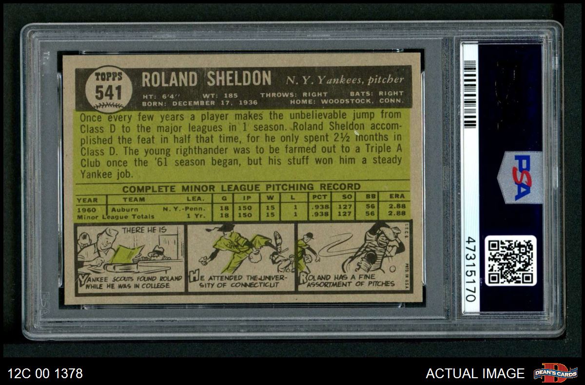 1961 Topps #541 Roland Sheldon PSA 7 - NM