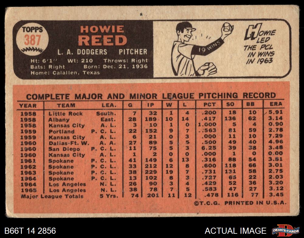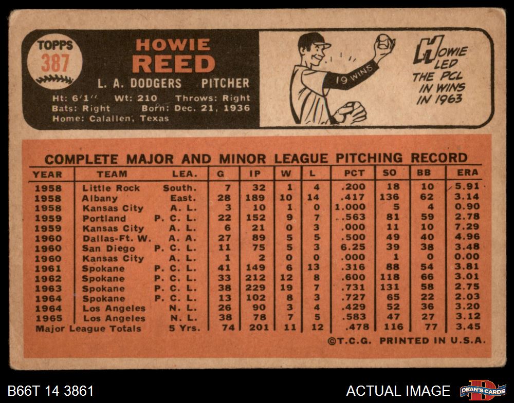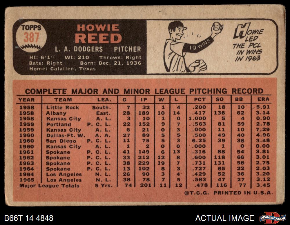 1966 Topps #387 Howie Reed 1 - POOR
