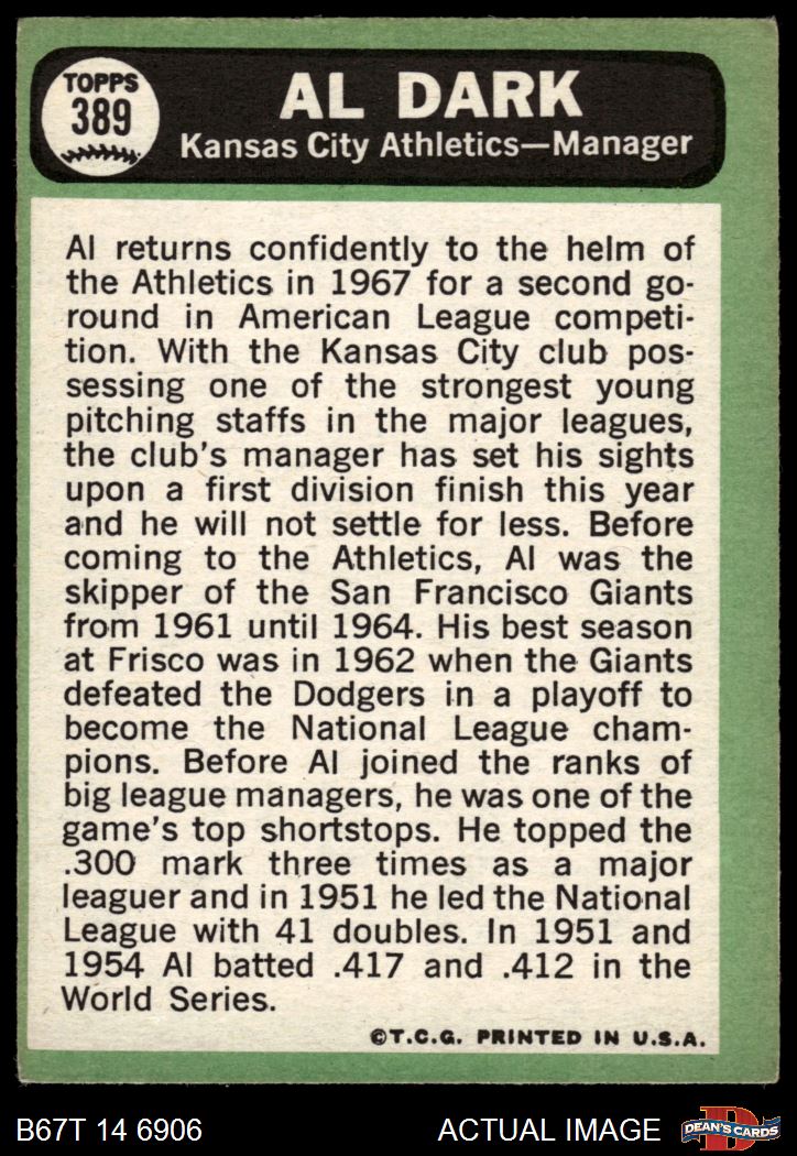 1967 Topps #389 Al Dark 2 - GOOD