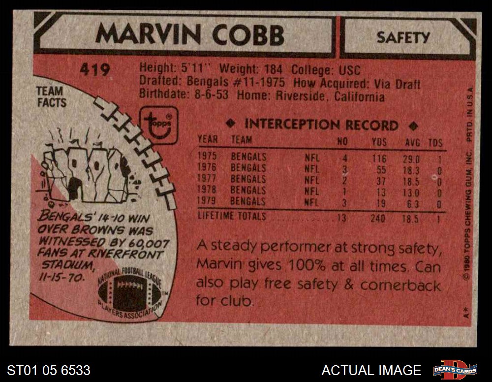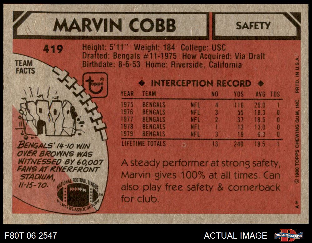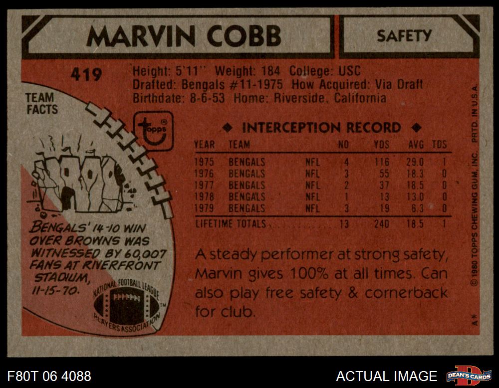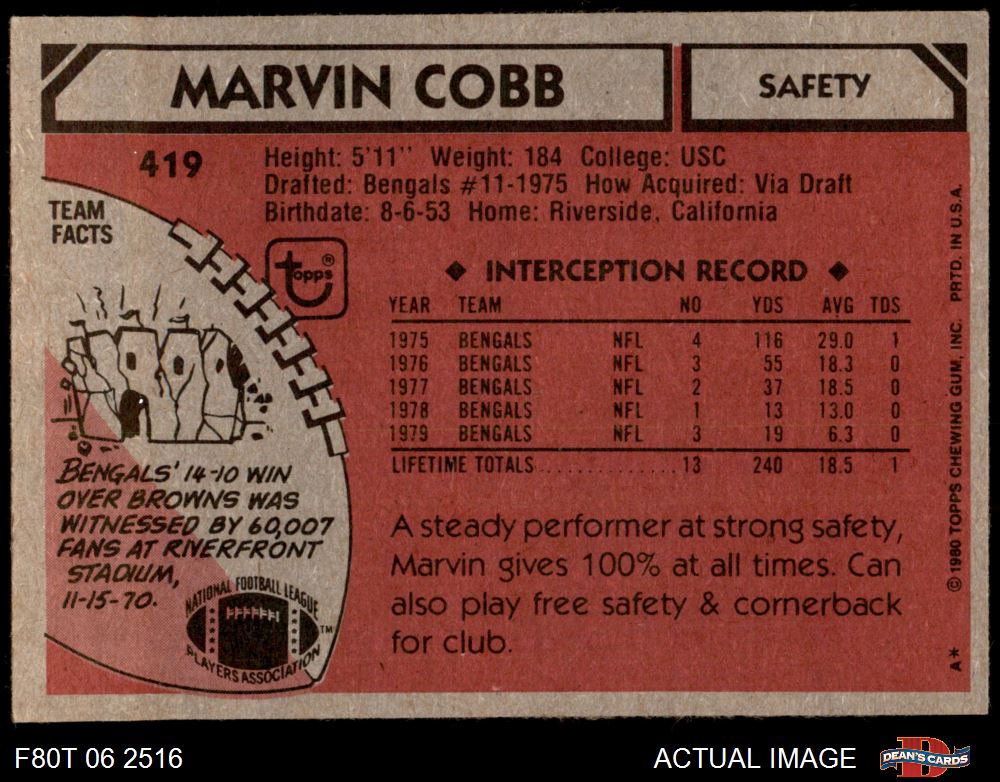 1980 Topps Football Cards (4,340 available)1980 Topps Bengals (77 available)