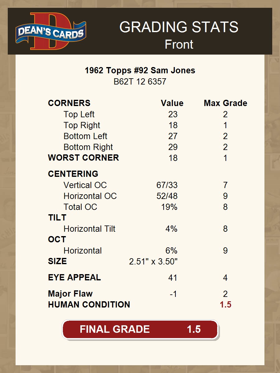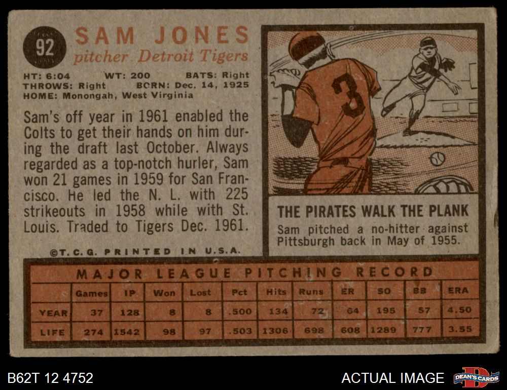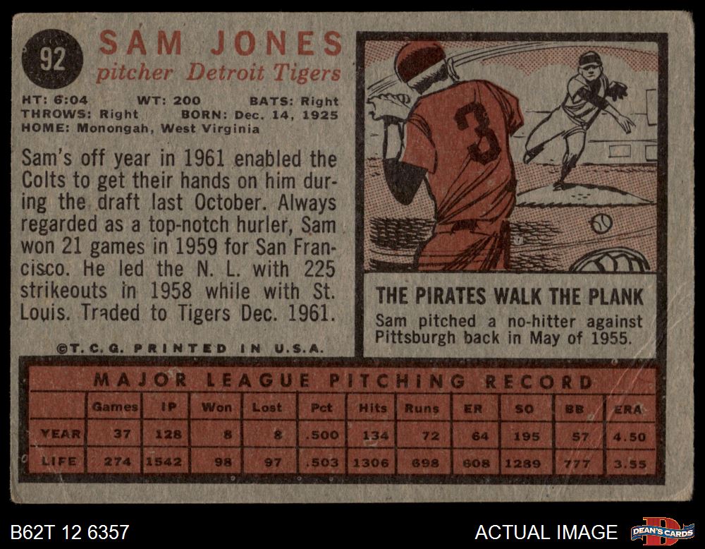 1962 Topps #92 Sam Jones 1.5 - FAIR