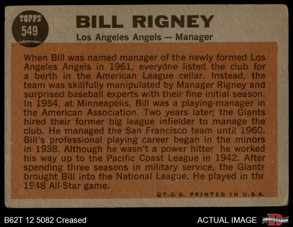 1962 Topps #549 Bill Rigney 1.5 - FAIR