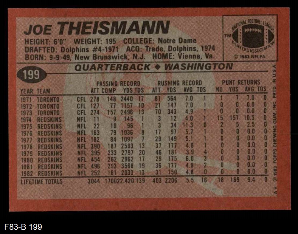 1983 Topps #199 Joe Theismann 8 - NM/MT