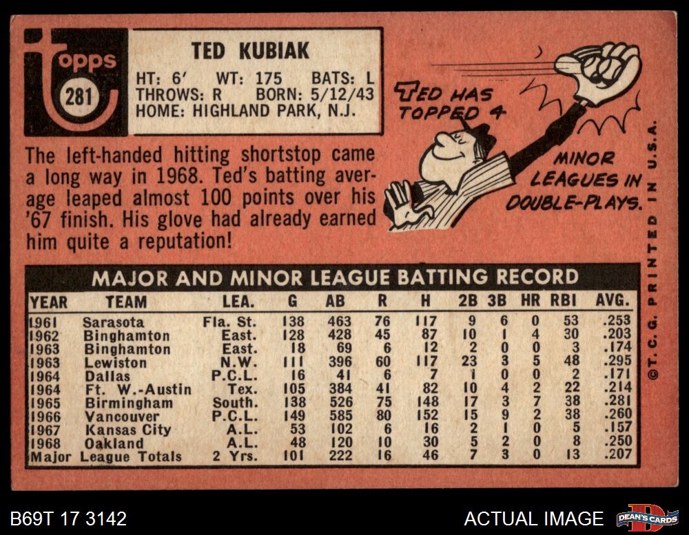 1969 Topps #281 Ted Kubiak 4.5 - VG/EX+