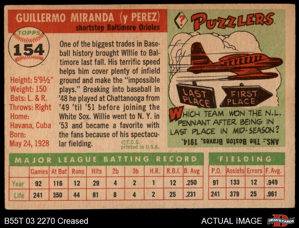 1955 Topps #154 Willie Miranda 2 - GOOD