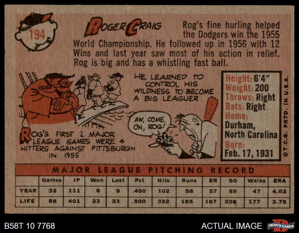 1958 Topps #194 Roger Craig