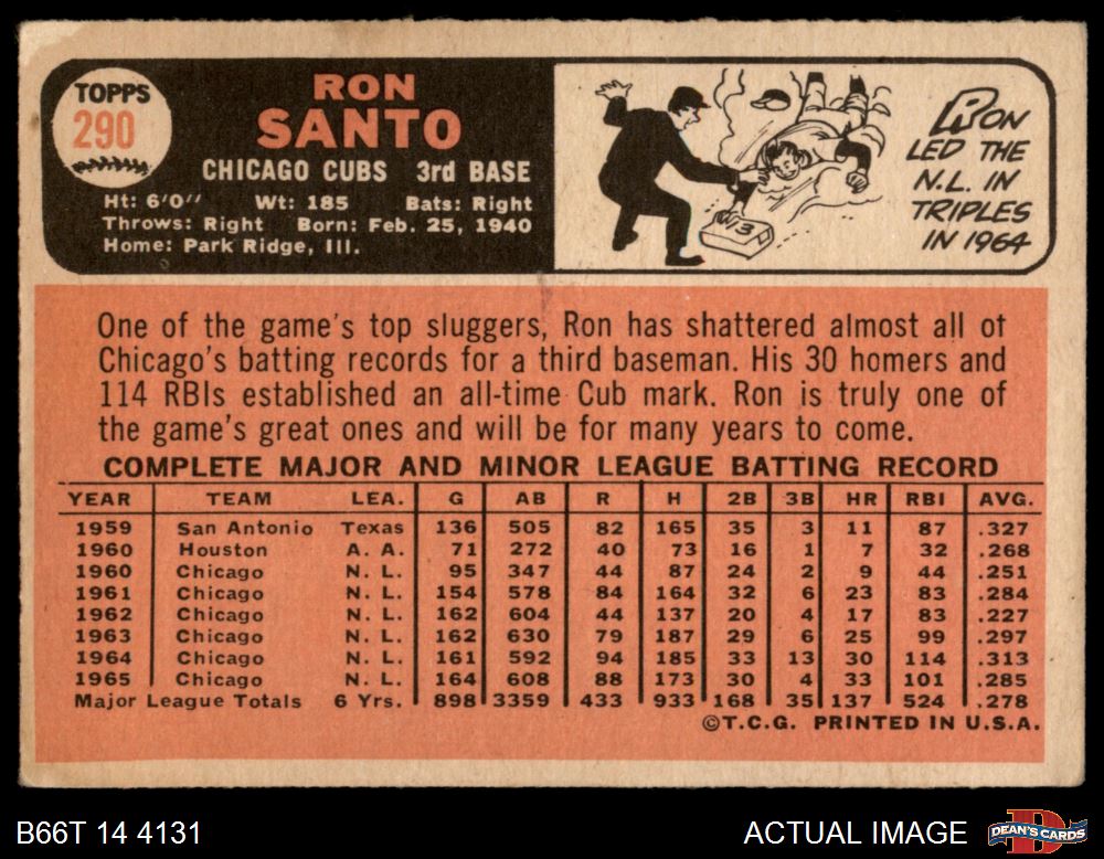 1966 Topps #290 Ron Santo 1.5 - FAIR