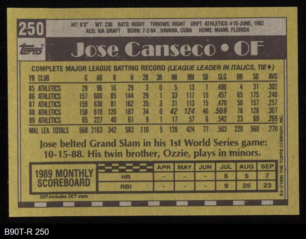 1990 Topps #250 Jose Canseco