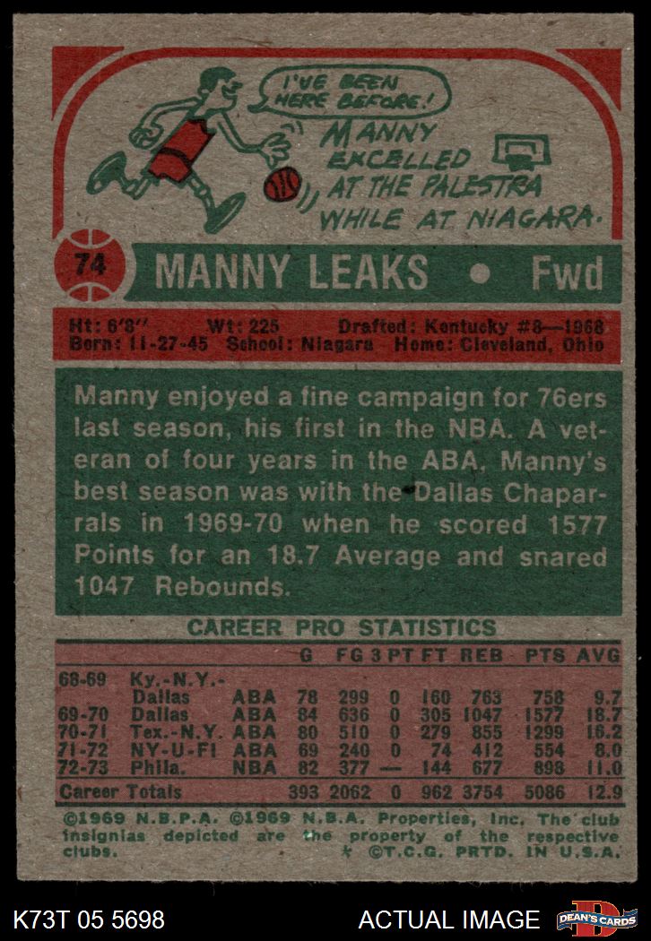 1973 Topps #74 Manny Leaks 4 - VG/EX