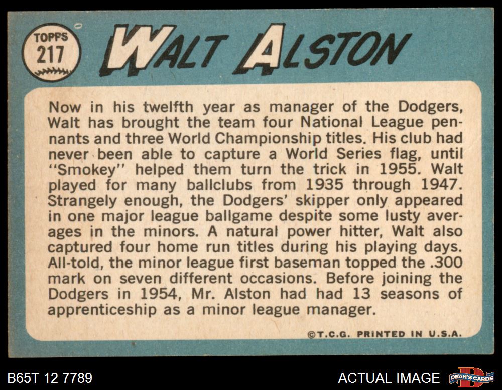 1965 Topps #217 Walter Alston