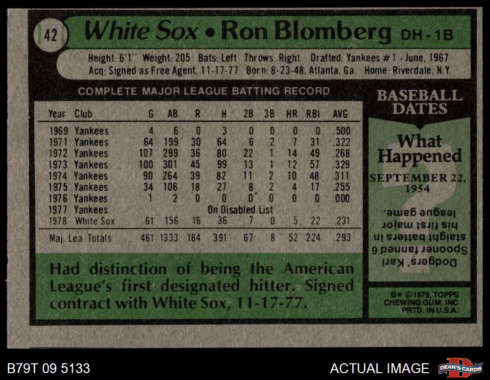 1979 Topps #42 Ron Blomberg 4 - VG/EX