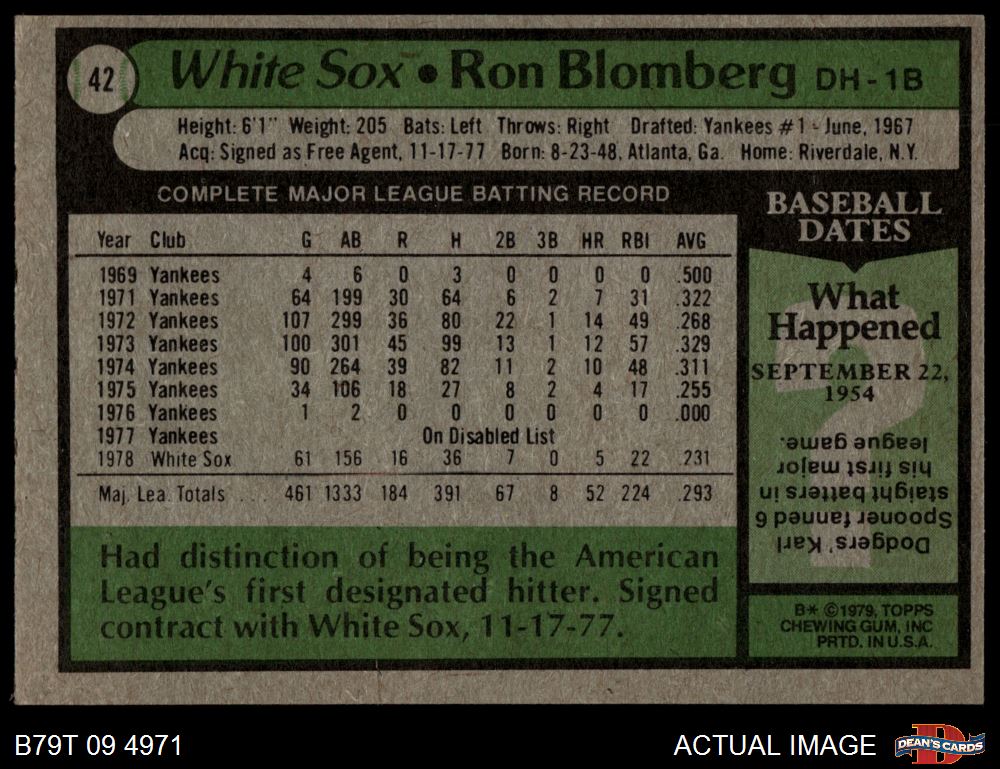 1979 Topps #42 Ron Blomberg 5.5 - EX+