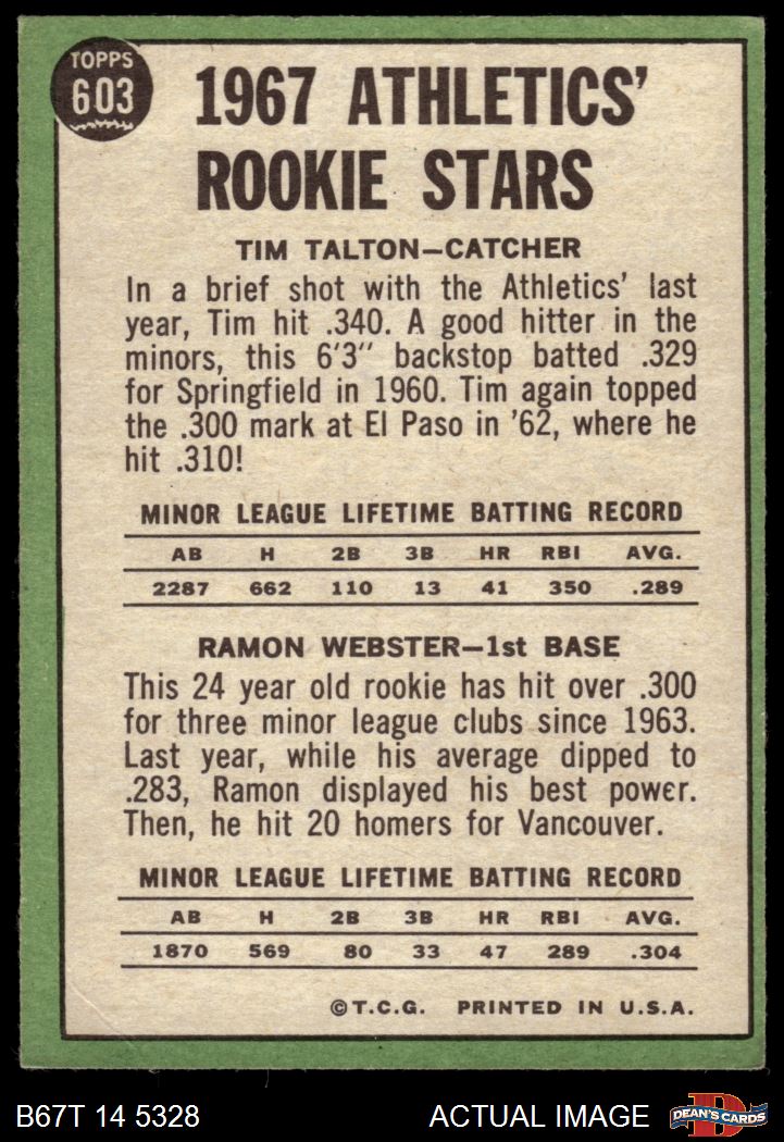 1967 Topps #603 - Tim Talton / Ramon Webster Athletics Rookies 3 - VG