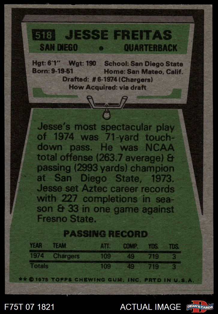 1975 Topps #518 Jesse Freitas 6 - EX/MT