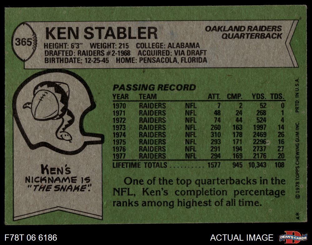 1978 Topps #365 Ken Stabler 4 - VG/EX