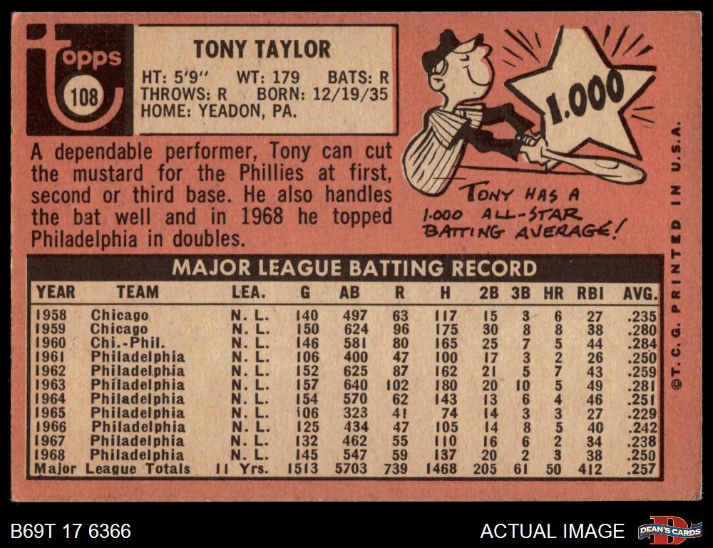1969 Topps #108 Tony Taylor
