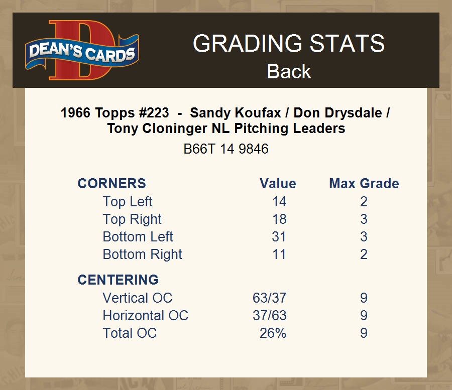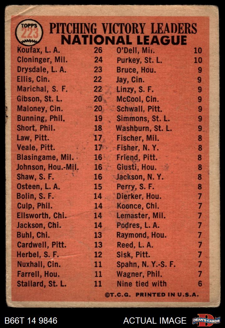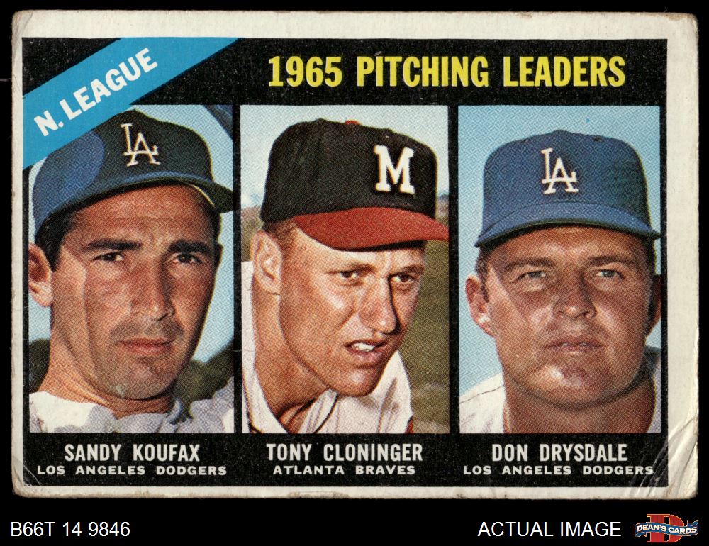 1966 Topps #223 - Sandy Koufax / Don Drysdale / Tony Cloninger NL Pitching Leaders 1 - POOR