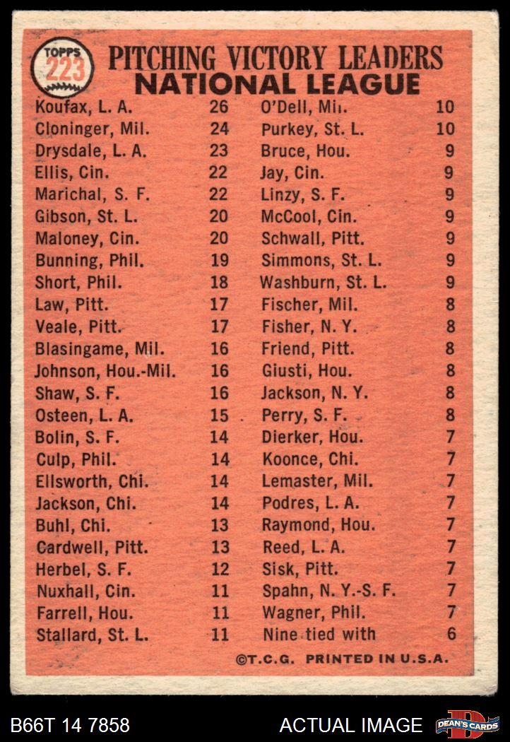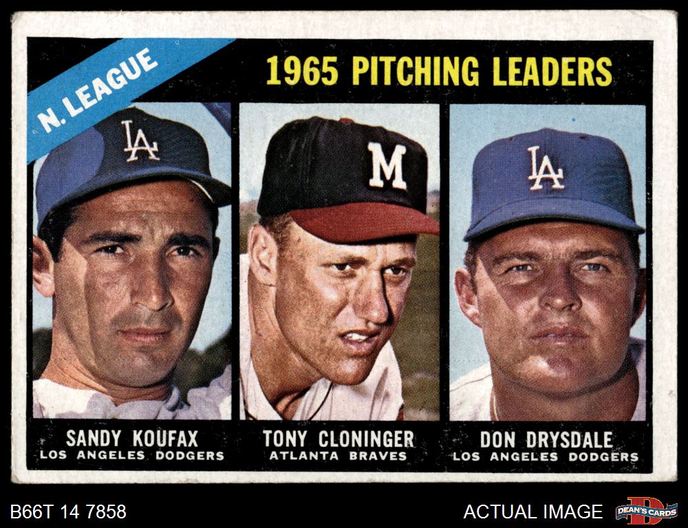 1966 Topps #223 - Sandy Koufax / Don Drysdale / Tony Cloninger NL Pitching Leaders 2 - GOOD