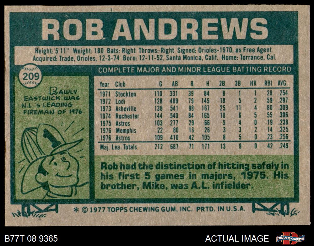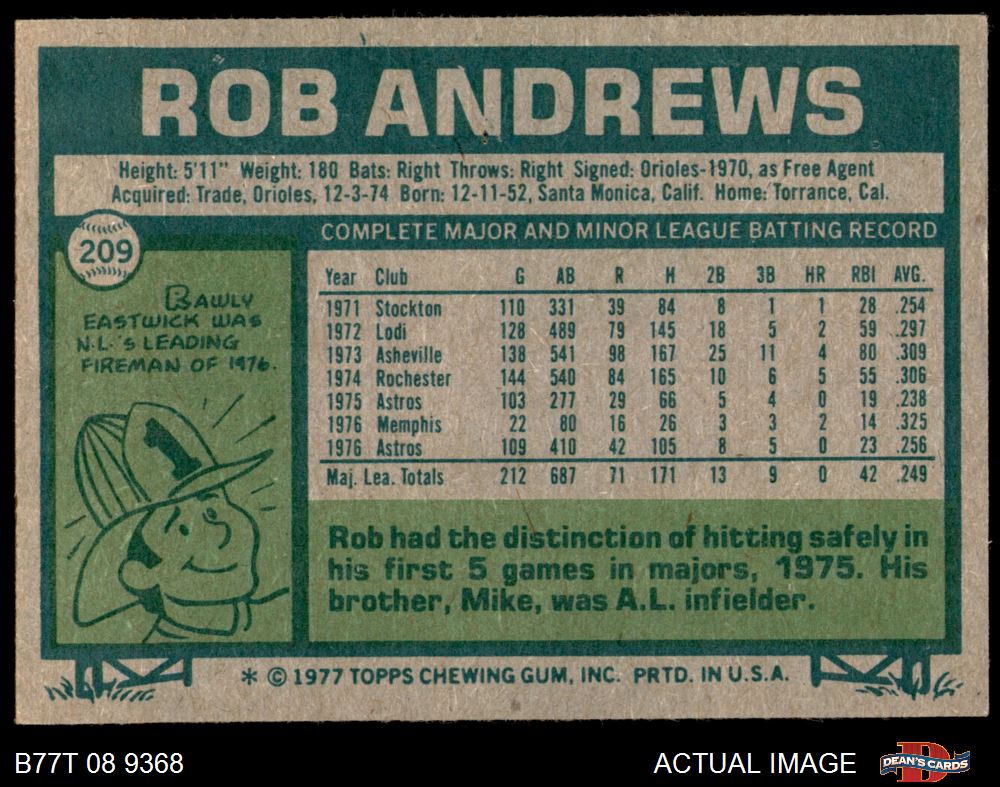 1977 Topps #209 Rob Andrews